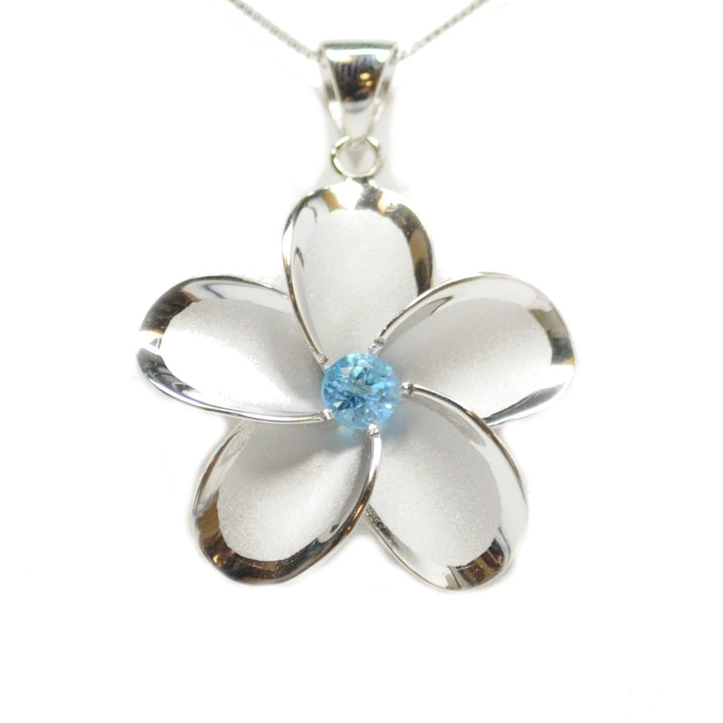 Sterling Silver Plumeria Flower with Blue Topaz Necklace